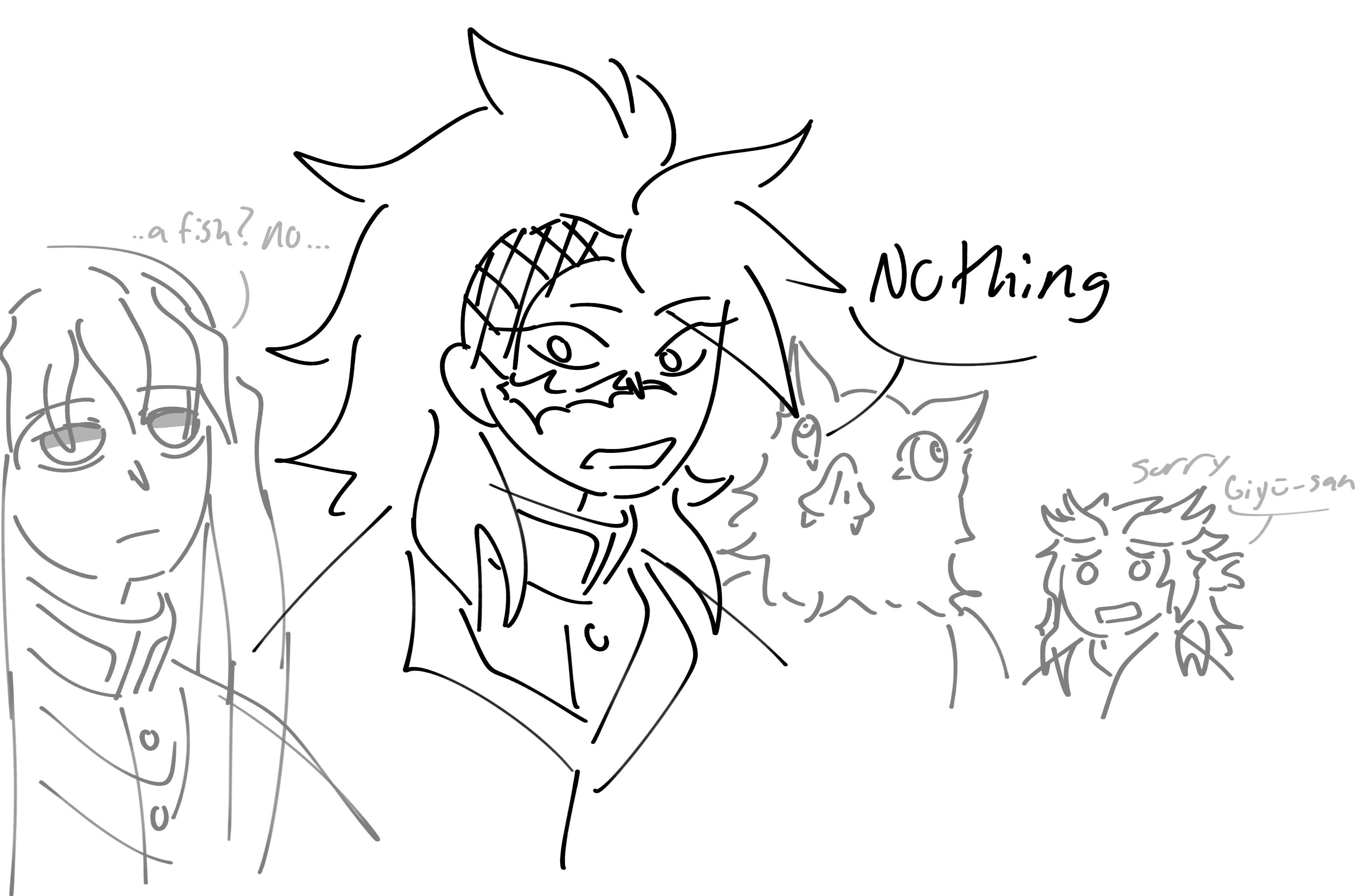 Giyuu gets captured and used for his nyctalopia-inducing abilities & prestige of having captured a yokai, im swapping Sabito and Sanemi's roles from the art lmao